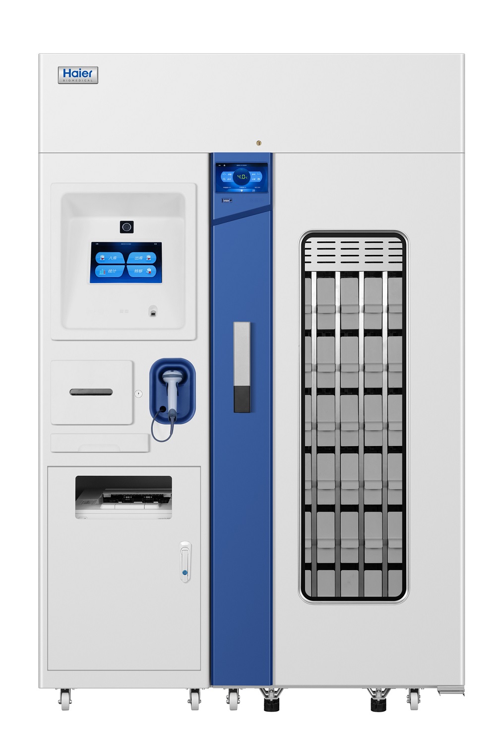 电子核对,条形码管理 •扫描血袋献血码和产品码,实现血袋出入库管理; •识别认证通过的工作人员,系统核对无误后,即可准确取到指定血袋。 人机交互,管理可视化 •智能血液管理系统可实时显示库存血袋的献血码、产品码、血型、血量、效期等信息,库存血液信息-键查询。 •可以清晰显示效期最近的血液存储位置,满足先入先出的管理规范。 安全可靠,取血过程可追溯 •配备指纹模块和NFC打卡模块,双重权限方式认证操作人员信息; •摄像头模块自动取照操作人员,取照后照片传输至血液管理平台,实现操作信息可追溯。 •每个抽屉配有独立电子锁,保证每一次取血动作只能取出正确的血袋。 箱内温度实时掌控 •6个高精度传感器,同时增加防低温机械温控器,双重控温更准,箱内温度恒定在41℃范围内。 •自带冷链监控模块,实时监测箱内温度,记录历史数据,并对异常进行报。 |